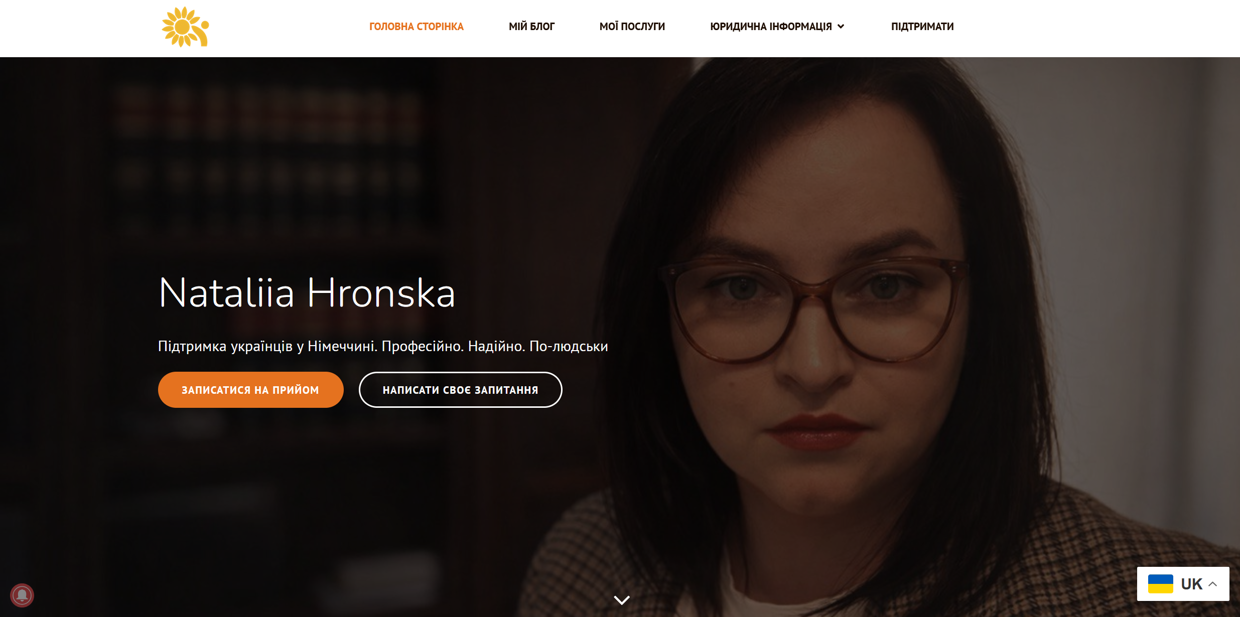 Веб-сайт для юристки Hronska Nataliia, которая предоставляет консультации и услуги по миграционному немецкому и украинскому законодательству.